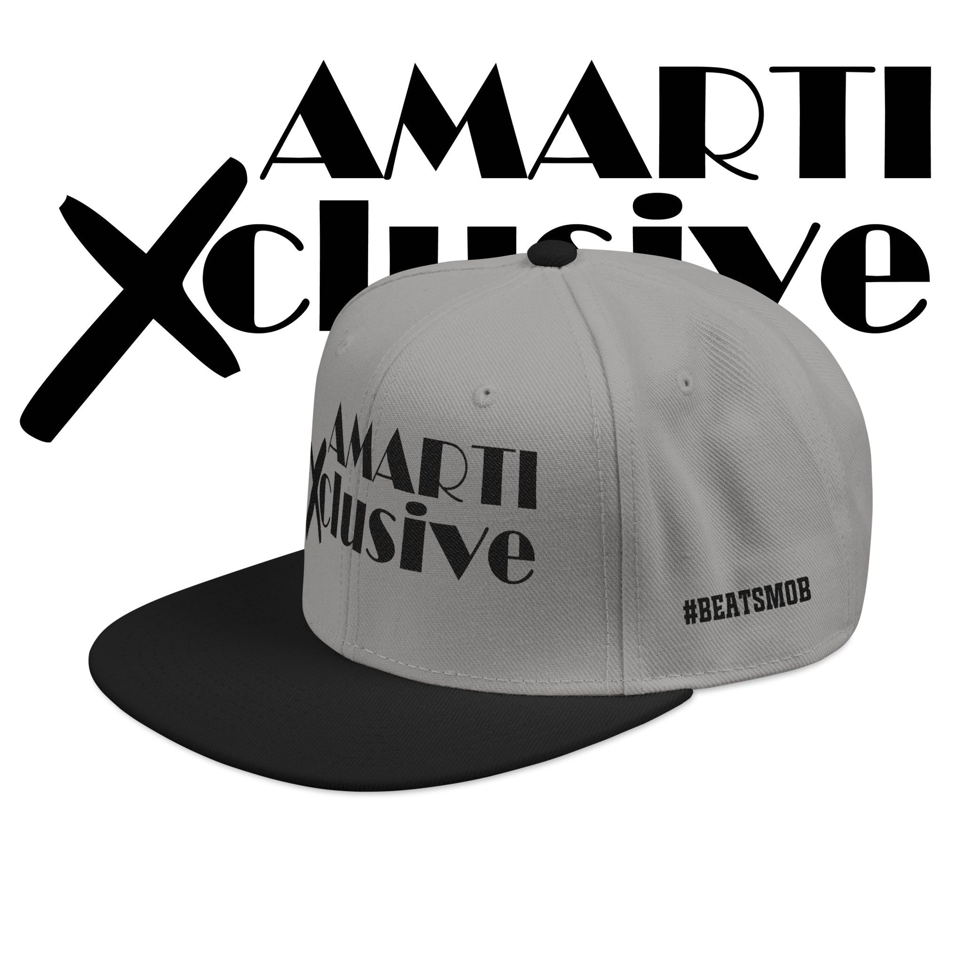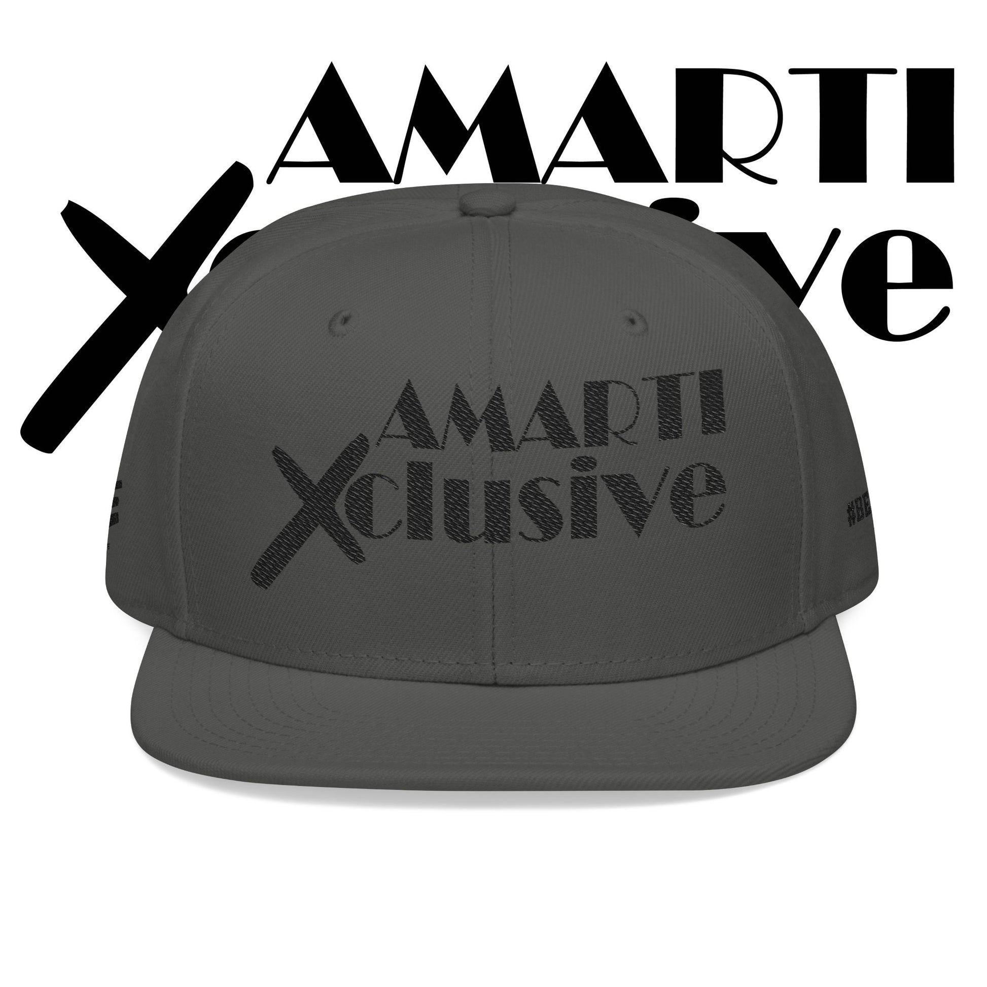 A structured snapback embroidered with bold, street-ready lettering that reads ‘AMARTI Xclusive.’ The high-profile, six-panel silhouette sits tall and sharp, giving a confident, urban edge. Subtle embroidered eyelets and a grey undervisor add refined details while the adjustable snap closure lets you dial in a secure fit. Made from a durable acrylic-wool blend, this cap keeps its shape and presence — an understated statement piece that anchors casual outfits and late-night sets alike.